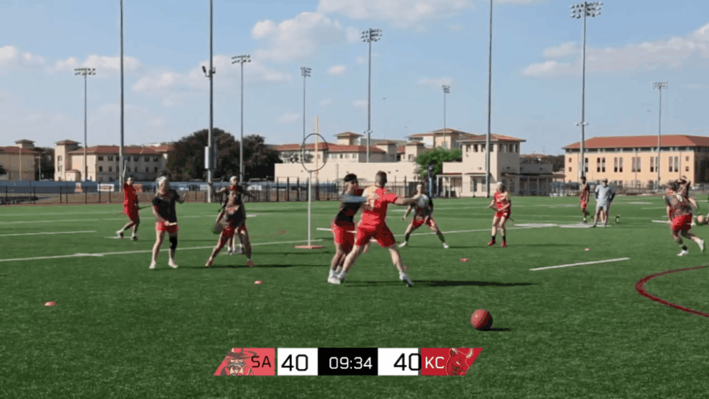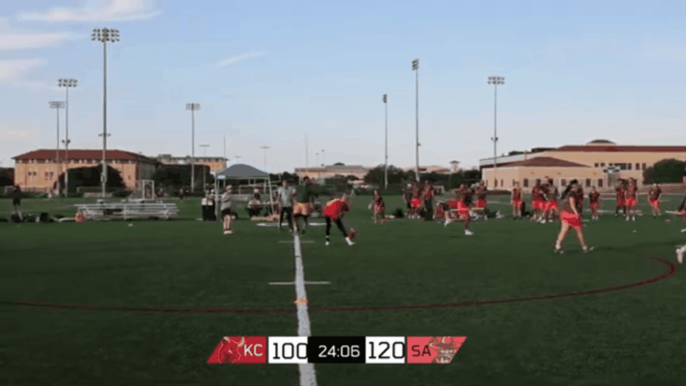 Kansas City went 3 for 12(!) in transition in game one, leading, of course, to the second-to-last play of the game. It’s next goal wins, and Johnson and McClannahan successfully create a no-dodgeball transition look (with only one dodgeball between them, no less) for the Stampede chasers. How did it go?